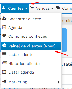 Para fazer a análise, vá em CLIENTES > PAINEL DE CLIENTES (NOVO)