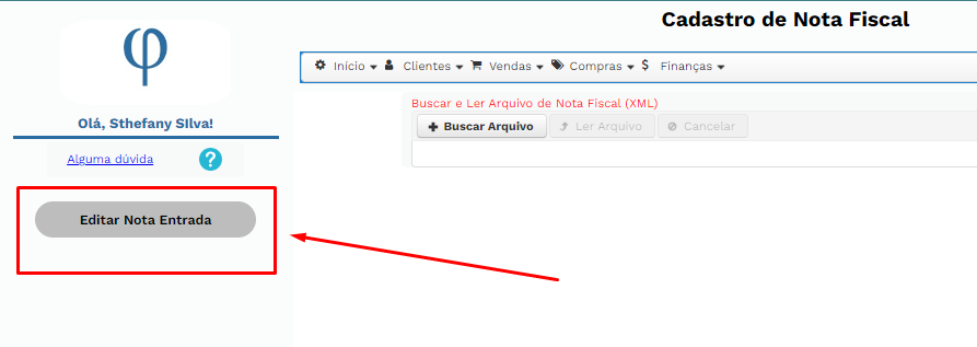 ### Após abrir a tela, clique no botão **EDITAR NOTA ENTRADA**: