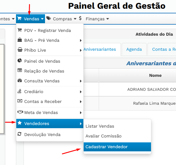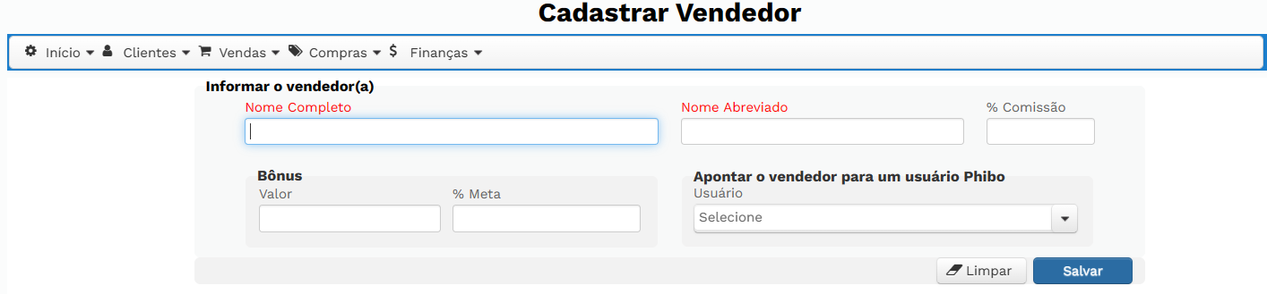 # Como cadastrar um Vendedor no sistema Phibo