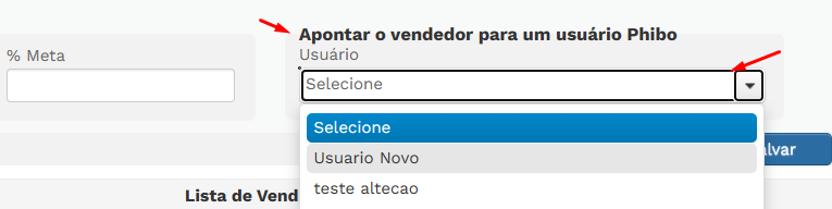 Se você quiser colocar esse vendedor como um usuário separado do sistema, deve primeiro criar o usuário e depois indica-lo no campo a seguir:<br>